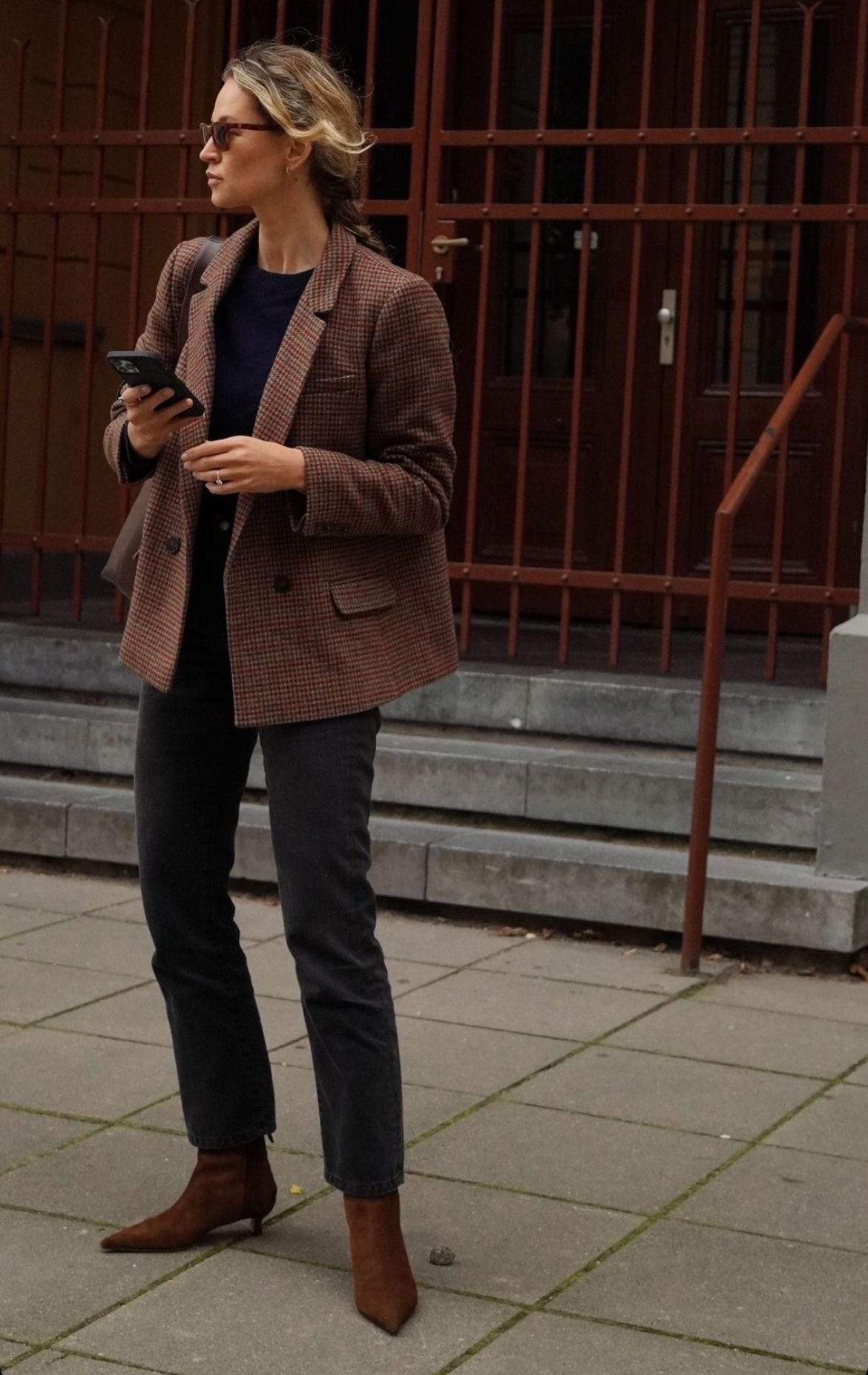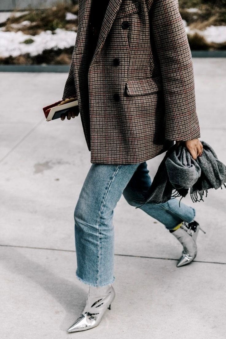 I also love the addition of a silver boot with a plaid blazer, shown below, and will be digging out an old Loeffler Randall pair, although these have me drooling and I already know they’re comfortable, for a future outfit.